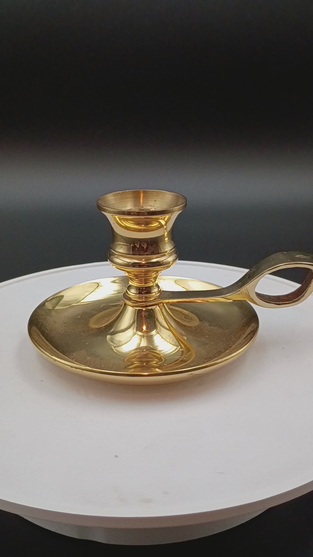 With its sturdy handle, this brass candlestick is easy to carry and reposition, providing versatility in its use. Whether you're hosting a dinner party, setting the mood for a romantic evening, or simply enjoying a quiet night with a good book, this candlestick will create a cozy atmosphere. The warm glow of candlelight combined with the rich, golden hue of brass enhances the overall ambience of your space.
